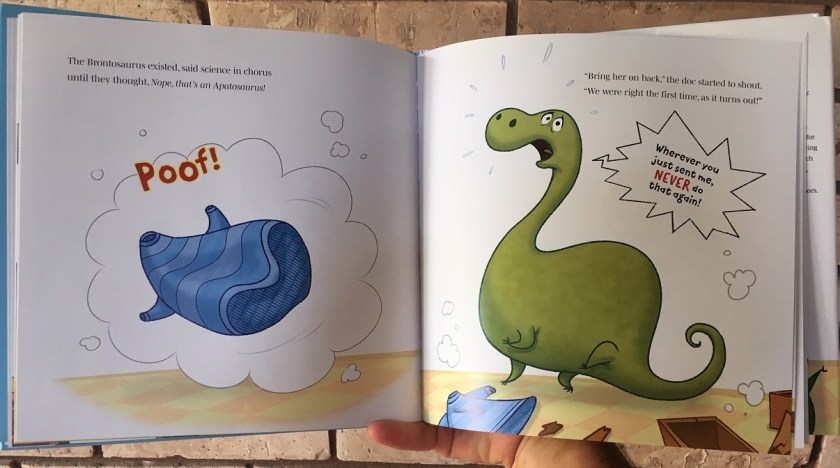 Its central theme is essentially the same as Boy, Were We Wrong About Dinosaurs! and The Tyrannosaur’s Feathers, but for younger audiences. A scientist introduces us to several dinosaurs, and incorrect assumptions people have made about them in the past, before over-correcting and suggesting an even goofier alternative, before finally settling in on what current science suggests about the factoid in question. Young readers get introduced to the proper posture of tyrannosaurs, the supposed butt-brains of Stegosaurus, and the existence of Brontosaurus (also mentioned in Ted Rechlin’s graphic novel Jurassic).