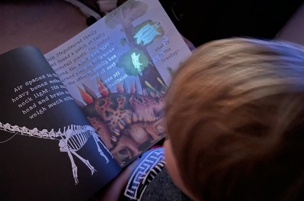 I don’t think I can’t quite give this one my “Stomp of Approval” do to the easily avoidable issues with some of the illustrations, but that doesn’t mean I don’t recommend it anyway. My boys love using their flashlights to uncover the secrets of each page, and it has earned a regular slot in our bedtime story rotation. Shine-A-Light: Dinosaurs is sure to prove a hit with dinosaur-obsessed youngsters in any household.