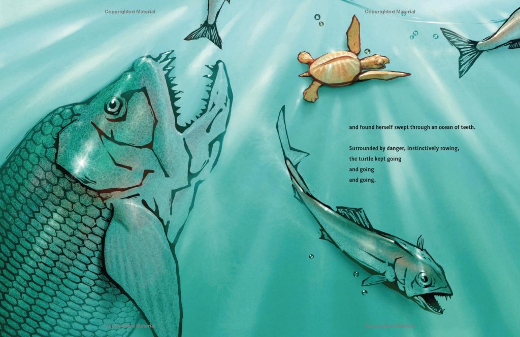 The book ends with a wistful musing on the extinction of the Archelon and its Cretaceous comrades, ending on a positive note about all the living turtles that still survive today.