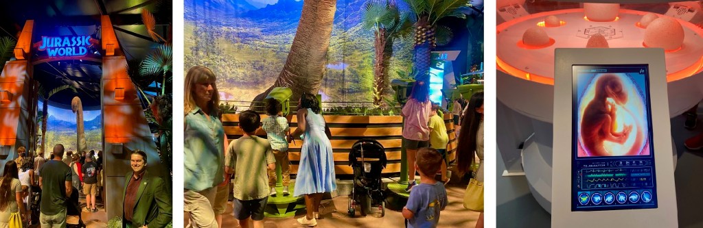 It may seem boring to other people, but I’m a sucker for time charts, and I was pleasantly surprised how we this geologic time scale broke down the various divisions of time in a way that was clear and easy for laypeople to understand. I also appreciated the Easter Eggs in the amber specimen cabinets, with their discoverers listed as certain famous IRL individuals connected to the Jurassic Park franchise.