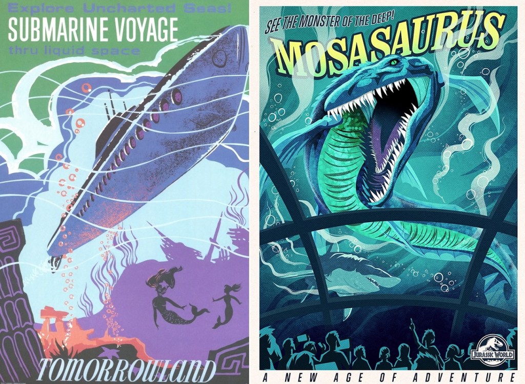 We successfully made our escape into the gift shop, which offers plenty of cool Jurassic Park merch to satisfy any fans’ desire. I couldn’t resist a “Life Finds a Way” pin (#JeffGoldblumFanForLife) and also snagged a couple of postcard-versions of their JW posters, which hit me right in the nostalgia due to their similarity to vintage Disneyland attraction posters.
