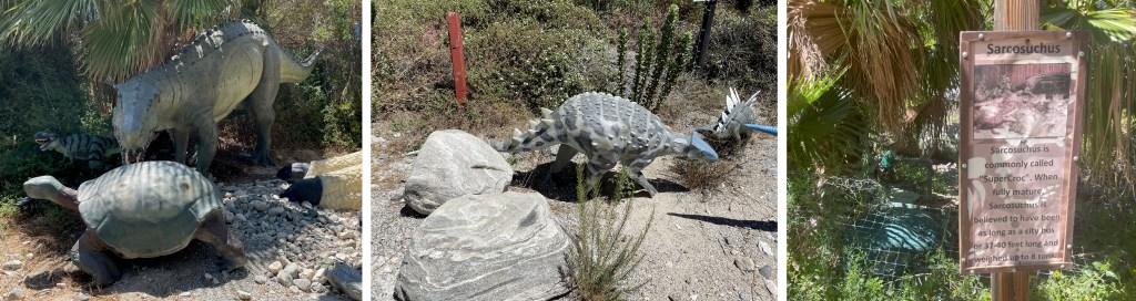 I last visited during my extended summer trip to California. I had noticed it sat about 45 minutes north of the Western Science Center, and since both attractions are over an hour’s drive from Orange County, I decided it would be most efficient to visit both on the same day. While I have stopped to take pictures of the two stars multiple times in my life, I had not done the Dinosaur Walk before. Now, perhaps coming immediately from such a well-done museum as the Western Science Center set me up for a negative opinion, but I personally did not find the Dinosaur Walk at all worth the cost of admission. While the boys enjoyed a dig pit activity that had the bonus of essentially guaranteed prizes, there’s not much to recommend about the park. I recognized the vast majority of the statues from multiple other cheap dinosaur themed attractions and events, and many of them were repeated multiples times along the trail. While some animatronics were present, they can only be found inside an additional gift shop, which vaguely attempts to look like you’re entering some sort of Flintstones cave house before suddenly giving up on the idea once you’re past the entryway. A gemstone panning trough just outside requires the extra purchase of a bucket dirt and goodies to sift through.