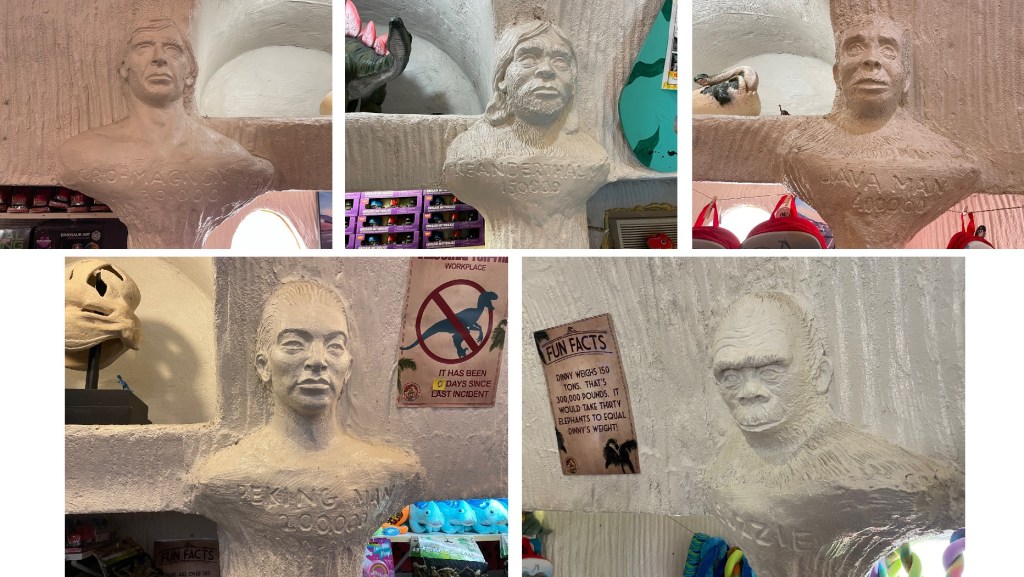 The original Cabazon Dinosaur statues are indeed road trip icons, and should you ever find yourself on the highway out to Palm Springs, it is practically a ritual requirement to stop and take a picture with the giant dinosaurs in the background. I do recommend checking out the gift shop inside Dinny the Brontosaurus, if only for the novelty of it, but I definitely recommend against actually paying admission to go inside the park and Mr. Rex. Save your money for souvenirs, or admission to some other California-based prehistoric attraction! (For some ideas, check out my reviews of the La Brea Tar Pits, the Western Science Center, and the Alf Museum of Paleontology.)