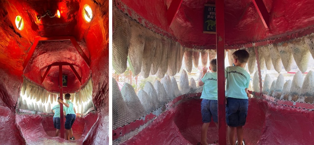 Really the only reason to buy a ticket is to access Mr. Rex. I did enjoy finally getting to clamber up inside the giant tyrannosaur, and the boys and I had a blast roaring through its teeth at passing tourists down below. I don’t plan on spending the $11-$13 dollars per person to do it again, however. Even with my wife staying home that day, the cost added up pretty quick. Even just adding a playground themed similarly to Fossil Reef Park would go a long way towards making it feel like a slightly better value experience.