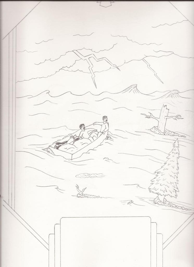 We had scarcely set out when a strange electrical storm overtook us! The waves rose ever higher, and in a moment of panic, Doda and I boarded a lifeboat (bringing only a few of my most essential possessions), only for the storm to hopelessly separate us from the ship and its crew!