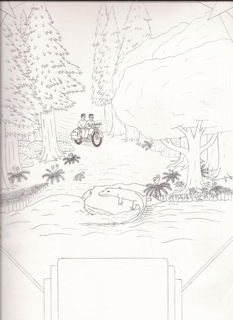 Retrieving my motorbike which Doda had thoughtfully stowed in the lifeboat, we set off on our adventure in this strange, primeval world!