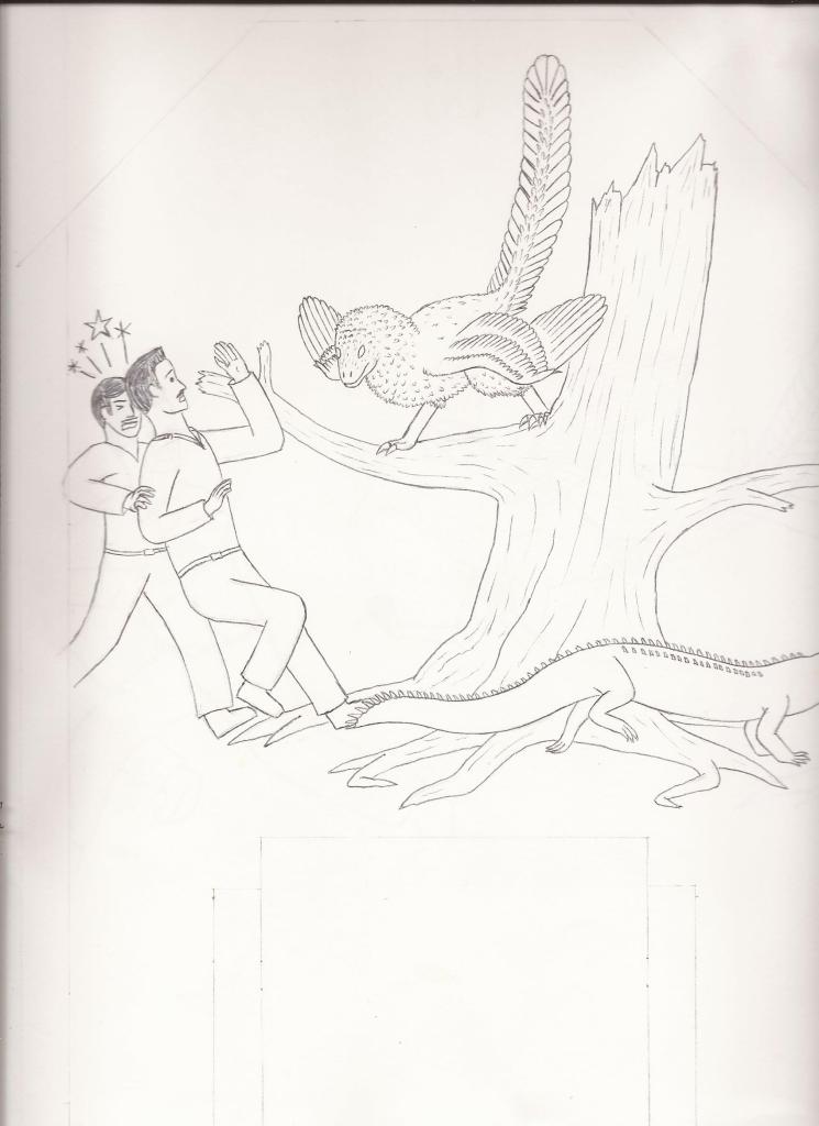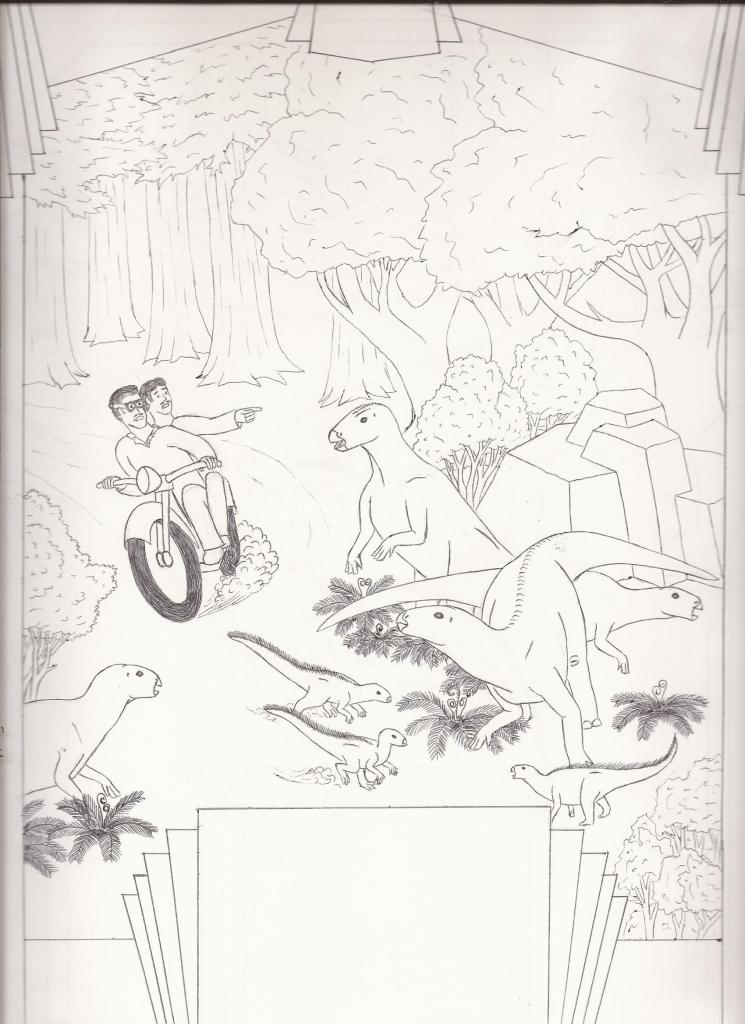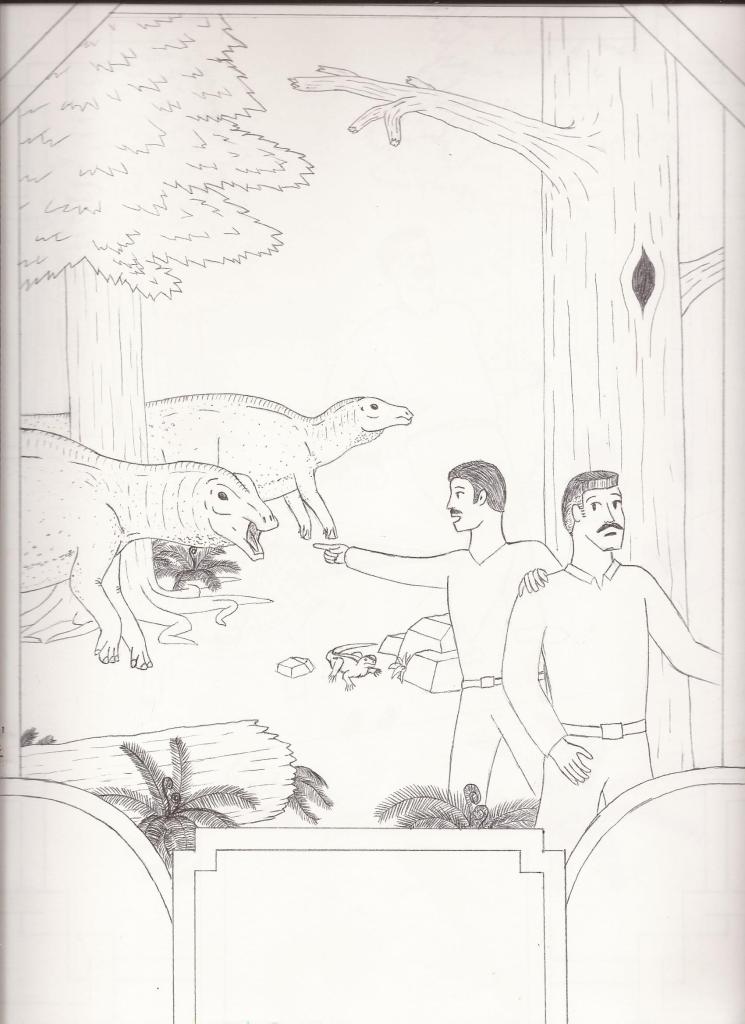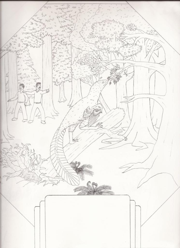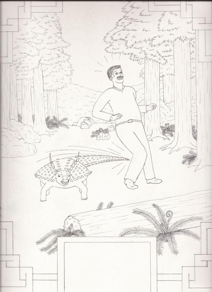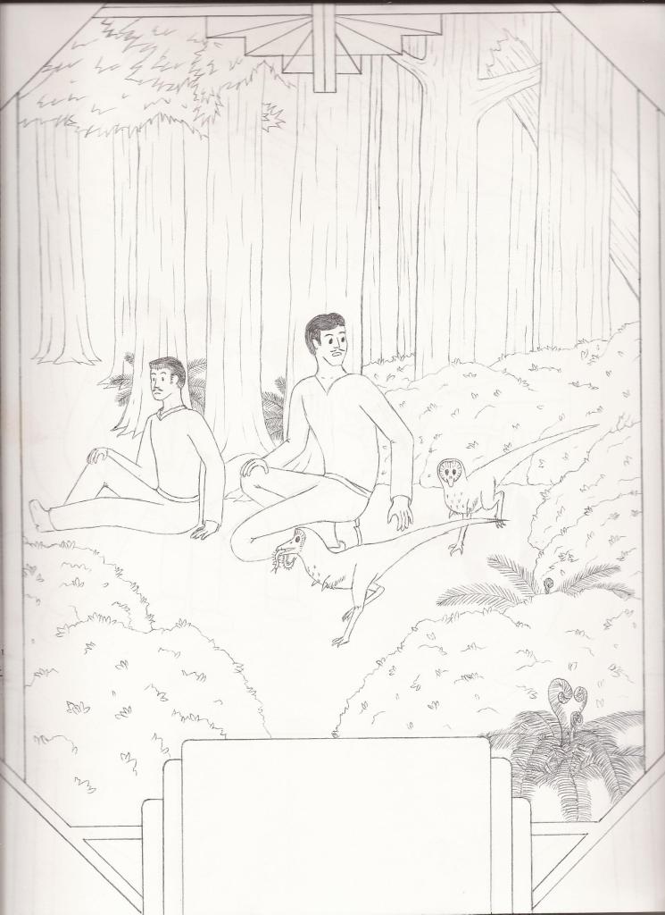 But what if he hadn’t? This tragic ending seemed an ignoble end for the charismatic Baron, and over the course of several years I found myself doodling (often on the bus to work) an alternate history where Nopcsa and Doda instead find themselves displaced in time, marooned on the very prehistoric island of Cretaceous Transylvania which Nopcsa himself had discovered the geologic evidence for. I had delusions of grandeur at one point of developing this story idea into a children’s book, but despite a couple of drafts, I never quite figured out how to rise above the level of a bad fan fiction. It doesn’t help that I wasn’t sure if the idea of giving the Baron a “second chance” at a fictional life was in poor taste or not. Further damning the project is the fact that I’m no illustrator, and while my dinosaurs sometimes look decent, my humans are all kinds of misshapen. That said, I do still sorta like some of the ideas and visuals I came up with, and have kinda wanted to share it with people for a few years now, despite my misgivings. So I guess I’ll take the plunge and post it here for your amusement. I doubt I can do any better than what’s here, so please be kind in your comments! I don’t have any plans to work on it further at this time, but we can joke about it together.