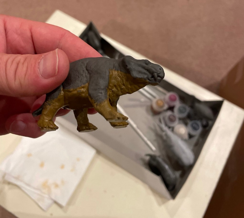 As these are all produced by a single individual, Michael Eischen ships these models unpainted in order to keep costs down. I was a little intimidated at the idea of doing the painting myself, and they sat unpainted on my shelf for the better part of a year. Finally, I started off on Kannemeyeria, since I figured this more primitive animal had greater possibilities for colors without looking obviously weird. As I grew more confident, I progressed to the more modern & familiar-looking animals that I felt pickier about, and I think they all turned out pretty well in the end!