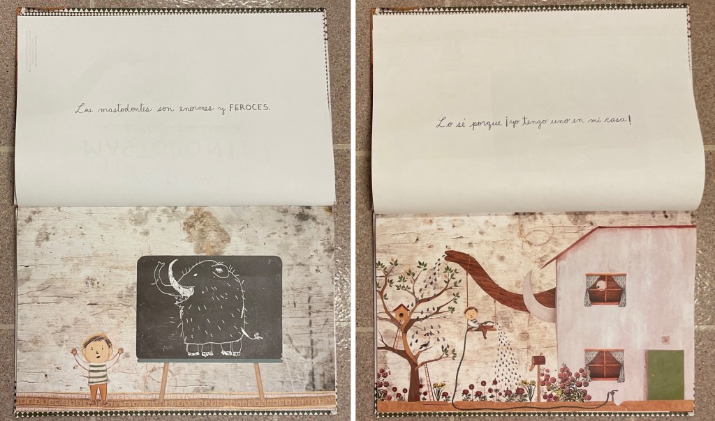 I found this book at my local library while looking for fun Spanish language easy reader books for my boys. I myself don’t have as much fluency in Spanish as I should, though my wife does, and wants to pass on to our kids. I had already come across Dinosaurios Bebés and Titanosaur, but I was excited to find a storybook that was up my alley as well! The fun alliteration of the title ¡Más te vale, Mastodonte! (does it count as a pun?) immediately caught my attention, and I knew we would enjoy reading this one aloud together.