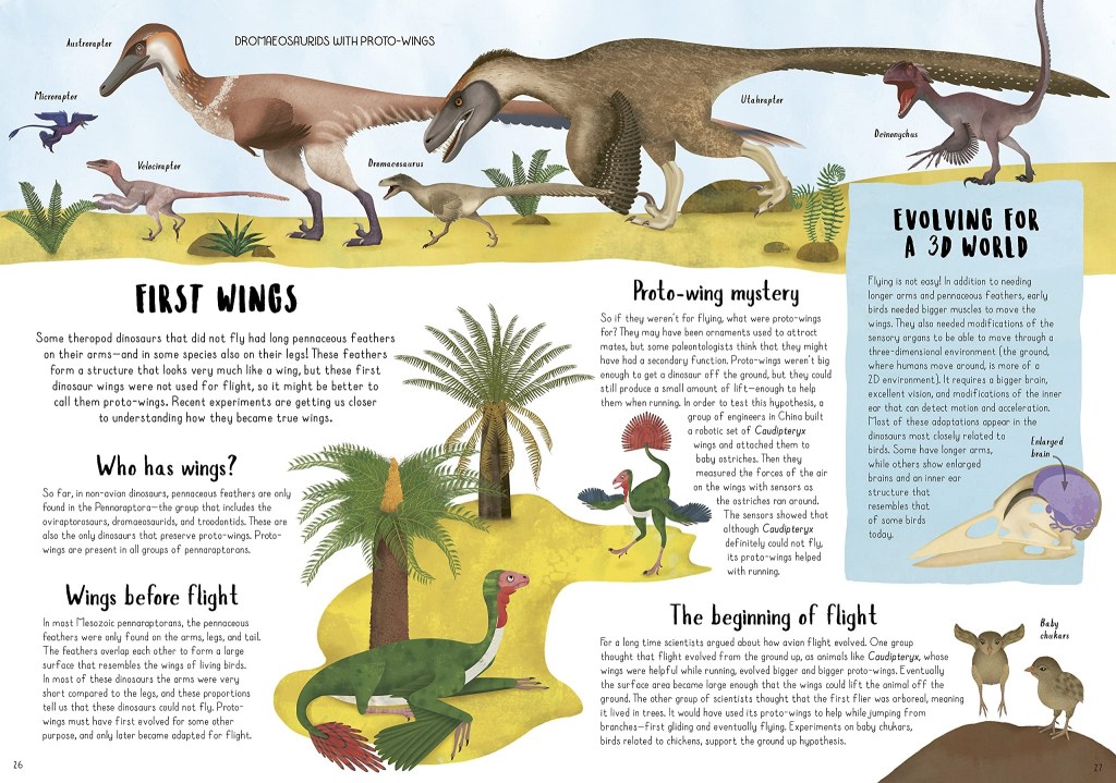 When Dinosaurs Conquered the Skies examines the evolutionary origin of birds from their ancestors among the non-avian dinosaurs. Written by the famed paleontologist Jingmai O’Connor and illustrated by Maria Brzozowska, this book follows a pretty similar format to its predecessor, which also briefly looked at bird evolution (including a welcome look at all-too-often-neglected Early Cenozoic birds), though this one of course goes into far greater detail. (It certainly goes into greater detail than Dinosaur Feathers and Dinosaurs Are Not Extinct, but as those were primarily poetry and cartoons, respectively, I suppose the comparison isn’t necessarily warranted.)