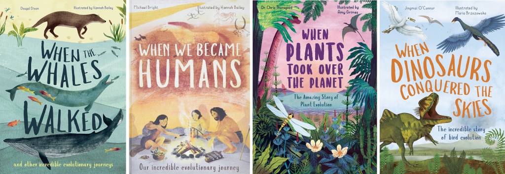 I have received a few books from Quarto Publishing in the past, including When the Whales Walked & Kaleidoscope of Dinosaurs and Prehistoric Life. Both of these really tickled my fancy, and have earned Quarto a reputation for quality material as far as I’ve seen. (Dinosaur Atlas took them down a peg, but I’ll try not to hold that against them.) Lately they’ve begun an expanded series on evolution that builds off When the Whales Walked. While the first book took a more generalized look at evolution overall, subsequent books have focused in on more specific topics. When We Became Humans and When Plants Took Over the Planet cover the evolution of humans & plants respectively, of course, while the latest entry follows perhaps the most famous evolutionary superstars outside of our own lineage.