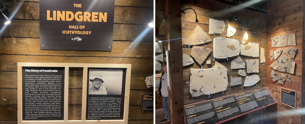 The Lindgren Hall of Ichthyology now divides the herpetarium from the prep lab, and is largely dedicated the incredible aquatic diversity of Fossil Lake. I actually wandered in at the same time as Anthony Lindgren himself, who was viewing his own namesake gallery for the first time! We chatted about it a bit, but I didn’t want to interrupt him by asking for a picture. The Orthocanthus & Diplocaulus reconstructions have also been moved to this area, despite being members of the local Texas Red Beds alongside Dimetrodon & friends in the main hall. (Incidentally, Orthocanthus appears to have formed a significant part of Dimetrodon‘s diet, a fact which is illustrated in both Sharks: A 400 Million Year Journey & Discovering Sharks, the latter of which includes a mural that hangs in the Whiteside itself!)