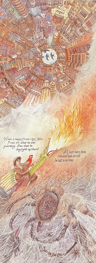 I immediately secured myself a copy from eBay, and was overjoyed to find it completely lived up to my memory, right down the the dragon spines that looked so sharp that I could practically feel them through the page! Sadly, it seems to be out of print now, which doubtless has contributed to its obscurity, and the difficulty I had in finding it. Therefore, I’ve decided to take the risk of uploading it here in full, both to give my readers the chance to enjoy it, and hopefully to possibly generate interest in getting it into print again! I might add little footnotes to the images if I think of something interesting to say, but otherwise I will simply let the book speak for itself.