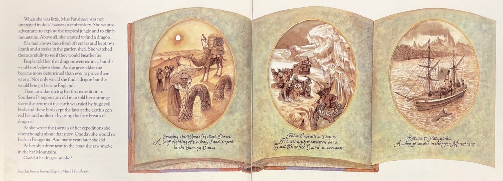 I feel like this book has something to offer every fan of prehistoric life in general. Dragons of course naturally beg comparison to dinosaurs, but the whole vibe of the book recalls the era of scientific discovery that surrounded the beginning of paleontology as a science. The dragon’s exhibit in this book particularly recalled the Crystal Palace Dinosaurs for me. In fact, The Dinosaurs of Waterhouse Hawkins would pair rather nicely with this book in some ways, if you’re into themed groupings of children’s books. For a deep historical dive, Witton & Michel’s The Art and Science of the Crystal Palace Dinosaurs is the most comprehensive source on the topic, and I think a reading of it will vindicate my assessment that Miss Fanshawe shares the general vibe of this era of science and paleontology.
