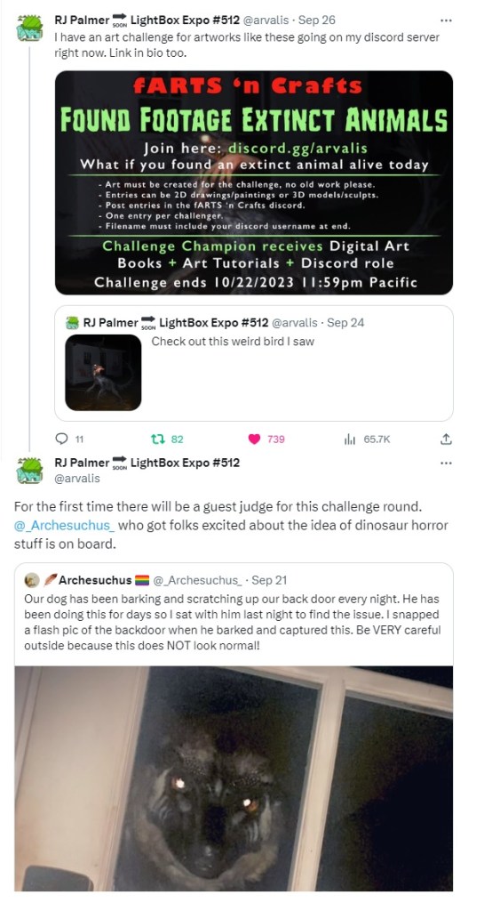 Lastly, if seeing all this has YOU excited to get in on the action, concept and paleoartist RJ Palmer has announced an art challenge on his Discord server for anyone who wants to submit something in this theme! (I tend to get a little overwhelmed by Discord for some reason, and so I am not super familiar with its workings; if the link I provided doesn’t work, try clicking it in RJ’s Twitter bio instead.) Fittingly enough, Archesuchus will be a guest judge for the entries, bring everything full circle!