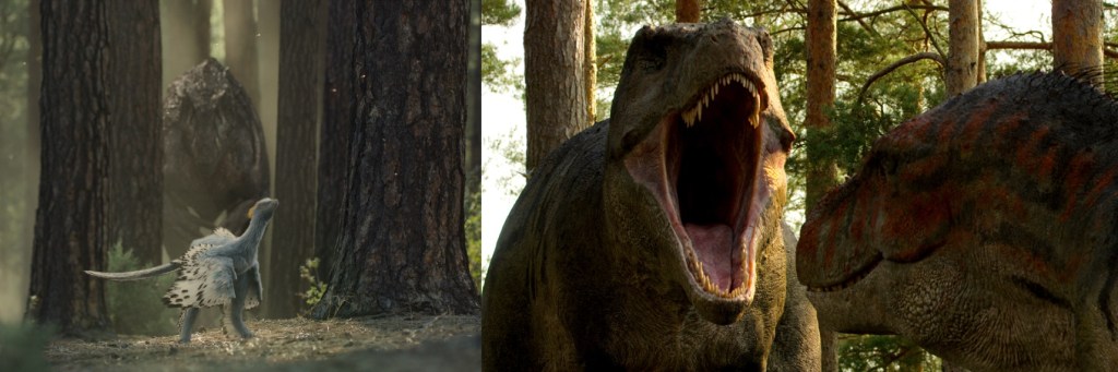 Episode one introduces some of the general concepts of the series, while episodes two through eight follow a generally chronological view of the history of life on Earth. The show doesn’t always pay close attention to the exact period its in, concerning itself more with “what followed what” in the general story of life, which isn’t a bad idea on its face, and mostly works, at least as far as the strictly prehistoric footage goes. There’s a strong emphasis placed on extinction events, which does help to ground the show a little more into definite time periods to ensure that the chronology moves generally forward. It also gives the show its main framing in its discussion of evolution, emphasizing how extinction events shape the opportunities and development of the creatures that survive through them.