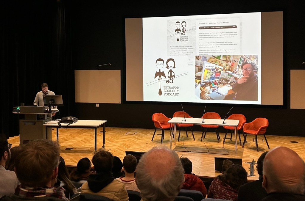 I’ve been wanting to attend ever since the first event in 2014, and after experiencing major FOMO seeing coverage of the ninth one last year, I resolved to finally visit for myself in 2023! The three (and change) day extravaganza was everything I expected to be: a rush of fascinating talks, gorgeous art, awesome swag, and endlessly enjoyable individuals from all points along the spectrum of science enthusiasm. While I’m pleased to see the convention succeed as much as it has, TetZooCon has grown so much in recent years that it now features multiple events running concurrently at any one moment throughout the weekend, so that no one person (not even Darren himself!) can visit everything the convention has to offer. My impressions here then are of course my own, perhaps even more so than in a similar event, though I struggle to think of anything I can quite adequately compare this to.