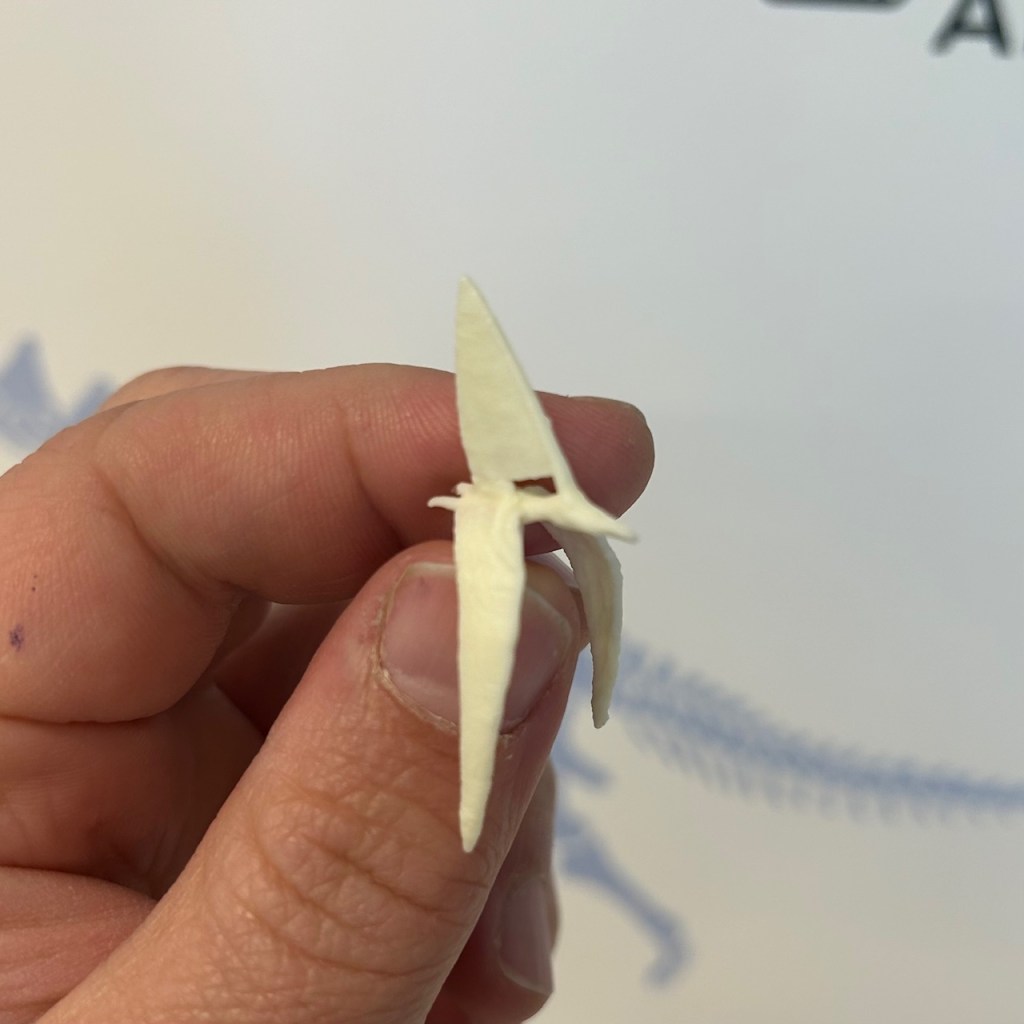 Haolonggood has also created an optional add-on to their model, turning it into a set with a detailed base. On the base itself, one can find a small pond, a fern, and a dead tree, into which an included, unpainted pterosaur can be slotted in, to boot. The pterosaur is clearly based on Nyctosaurus (with a skin flap connecting its crest struts), and comes in two randomly selected variants, the difference being in the orientation of the wings. There DOES happen to be a nyctosaurid pterosaur called Alamodactylus known from a similar range to Alamosaurus, although the two are not currently known to be contemporaneous. As continuing finds seem to keep expanding the temporal range of nyctosaurid pterosaurs, though, I think I’ll pretend it at least belongs to the same lineage (see, for example, Prehistoric Planet‘s Barbaridactylus).