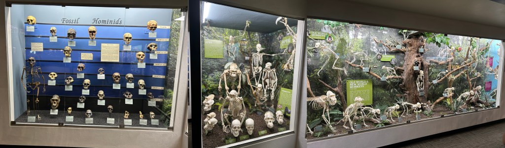 I said the museum doesn’t delve MUCH into prehistory, but their primate section DOES include a wall of hominin skulls that show of the rather bushy tree of human evolution. While these were all replicas, it was cool to see this exhibit inserted matter-of-factly next to all the other family relationships on display, showing that the change between fossil hominids is not much more remarkable than that between many other animal groups.