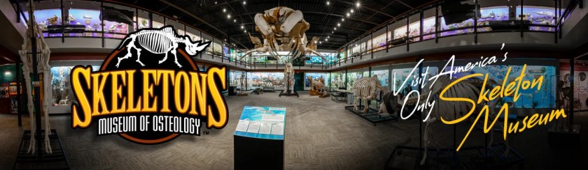 I recently took an overnight trip to Oklahoma City for a quick getaway with the family. Walking around the “Bricktown” area held plenty of fun things to do, but ever the consummate nerd, my chief interest lay in the nearby museums! The Sam Noble Museum was the big draw, as I had wanted to visit there for several years now, but while looking for other things to do in the area, I discovered the Skeletons: Museum of Osteology only a short drive away! While it doesn’t delve (much) into prehistoric life, anyone who enjoys natural history museums will enjoy this place as well.