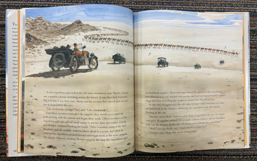 Written and illustrated by Brian Floca, Dinosaurs at the Ends of the Earth tells the story of these expeditions from the perspective of paleontology assistant George Olson, one of the many fossil hunters that made up Andrews’ team.