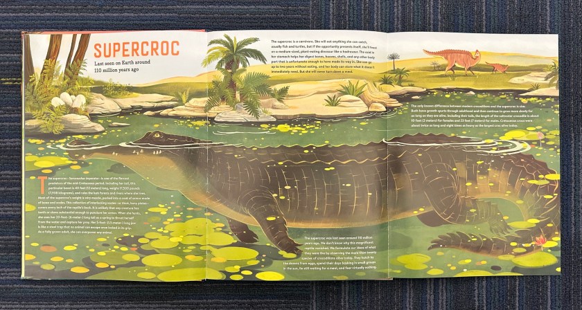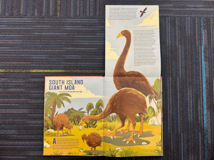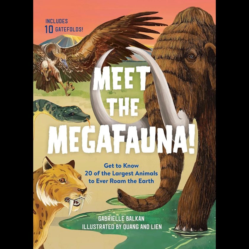 Here’s another book about ancient megafauna, appropriately titled Meet the Megafauna! Written by Gabrielle Balkan and illustrated by Phung Nguyen Quang & Huynh Kim Lien, it is similar in premise to Stone Age Beasts, in that it features a different prehistoric giant on each page. It differs though in focusing more explicitly on the concept of megafauna, rather than on a specific period of time.