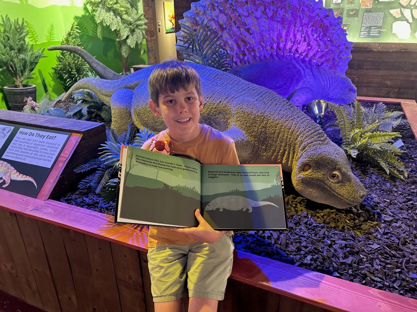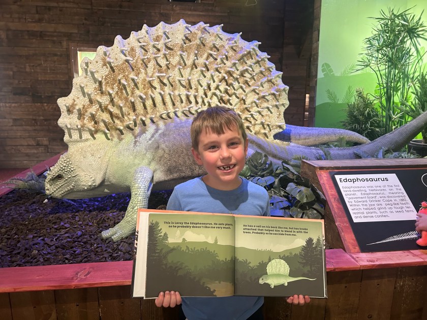 Both written and illustrated by Holly Simon, I Came Before the Dinosaurs! focuses on the prehistoric animals of the Permian Period, and in fact stars specific, individual specimens on display at the Whiteside Museum that have been found near the town of Seymour, Texas. The book is narrated by “Abby” the Dimetrodon, who introduces readers to her compatriots, including Sandy the Diplocaulus, Leroy the Edaphosaurus, Joy the Eryops, and more.
