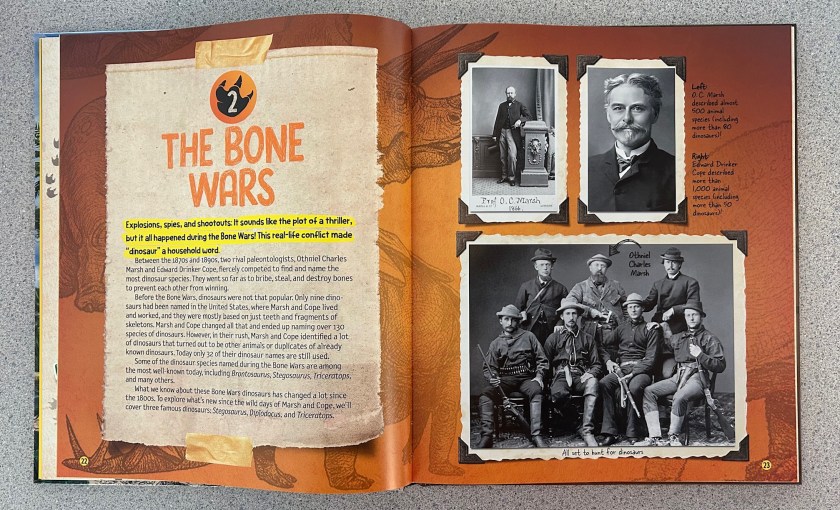 Bearing the subtitle “Amazing Breakthroughs, Mega Mistakes, and Unsolved Mysteries in Dinosaur Science”, I Know Dino! delivers on precisely that. The book introduces readers to a general history of dinosaur discoveries, organized according to different eras in dinosaur research such as the Bone Wars or the Dinosaur Renaissance.