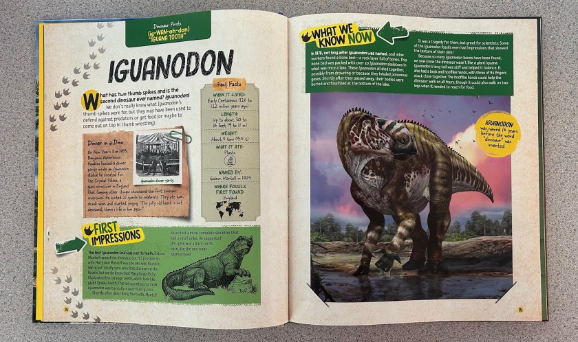 If you’re the kind of person interested not just in the dinosaurs themselves, but in the history of paleontological discoveries, I Know Dino! provides the perfect reading experience for you. I would possibly compare it to Tales of the Prehistoric World in its historical perspective, though the two books do rather different things, and can serve as complementary texts to each other. I thoroughly enjoyed I Know Dino!, and I give it a hearty Dino Dad Stomp of Approval!
