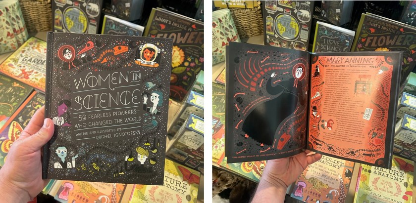 While I haven’t featured any of her books here before, my readers may nevertheless be familiar with the work of Rachel Ignotofsky. She is a prolific children’s author and illustrator, but it perhaps best known for her bestselling book Women in Science. It’s a great book, but I ultimately decided against reviewing it here since there was only a single page relevant to paleontology, discussing the work of Mary Anning.