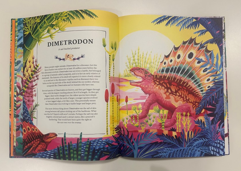 I suppose it’s fitting in a way that a book called “Dinopedia” would focus more on dinosaurs and their contemporaries than other creatures, but if they were going to bother with other time periods, I would have appreciated a slightly more robust offering of creatures. Maybe one for each period of the Paleozoic/Cenozoic, at least.