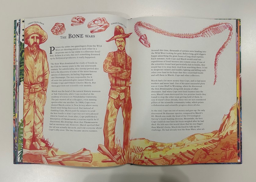 The standard creature profiles are interspersed with pages devoted to broader topics, such as “The Great Dying” or “The Bone Wars”. This gives the book a more well-rounded variety of subjects to discuss than could be achieved with the creature profiles alone.