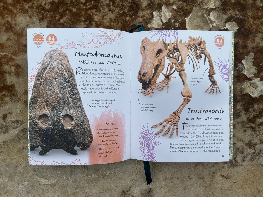 I did note one significant error in this book. Mastodonsaurus is correctly labeled as a Triassic animal, but incorrectly placed in the Paleozoic section. I’m not sure how this oversight happened, but several entries belong to multiple periods, making it slightly arbitrary which era they get placed in. Perhaps Mastodonsaurus got mixed up in that shuffle. Hopefully future editions of the book move it to the correct section.